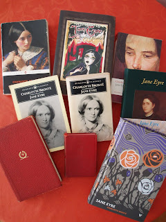 Jane Eyre cumple 162 años y durante todos esos años se ha publicado diría que miles de veces en miles de ediciones diferentes. Manuel y yo, sin coleccionar distintas ediciones (como sí que hace Manuel con Cumbres borrascosas, que colecciona ediciones en distintos idiomas), hemos ido acumulando varias casi sin darnos cuenta. Y de ahí la pregunta: ¿cuántas ediciones son demasiadas? No acumulamos por acumular (ejem), sino que hay portadas, introducciones, reediciones o cualquier otra característica difícil de entender que hacen que tal edición sea irresistible o curiosa y termine instalada en nuestra estantería, feliz entre sus hermanitos, como se ve en las dos primeras fotos. Aclaración innecesaria: no hay ninguna primera edición de 1847 y aunque a veces cuando veo alguna a la venta o en subasta se me ponen los dientes largos, el precio y la delicadeza del libro me hacen darme cuenta de que, en realidad, tampoco la quiero. No la podría leer, hojear ni darle los cuidados que necesita un libro así, de modo que mejor que vaya a un sitio más apropiado (eso me digo yo al menos).
